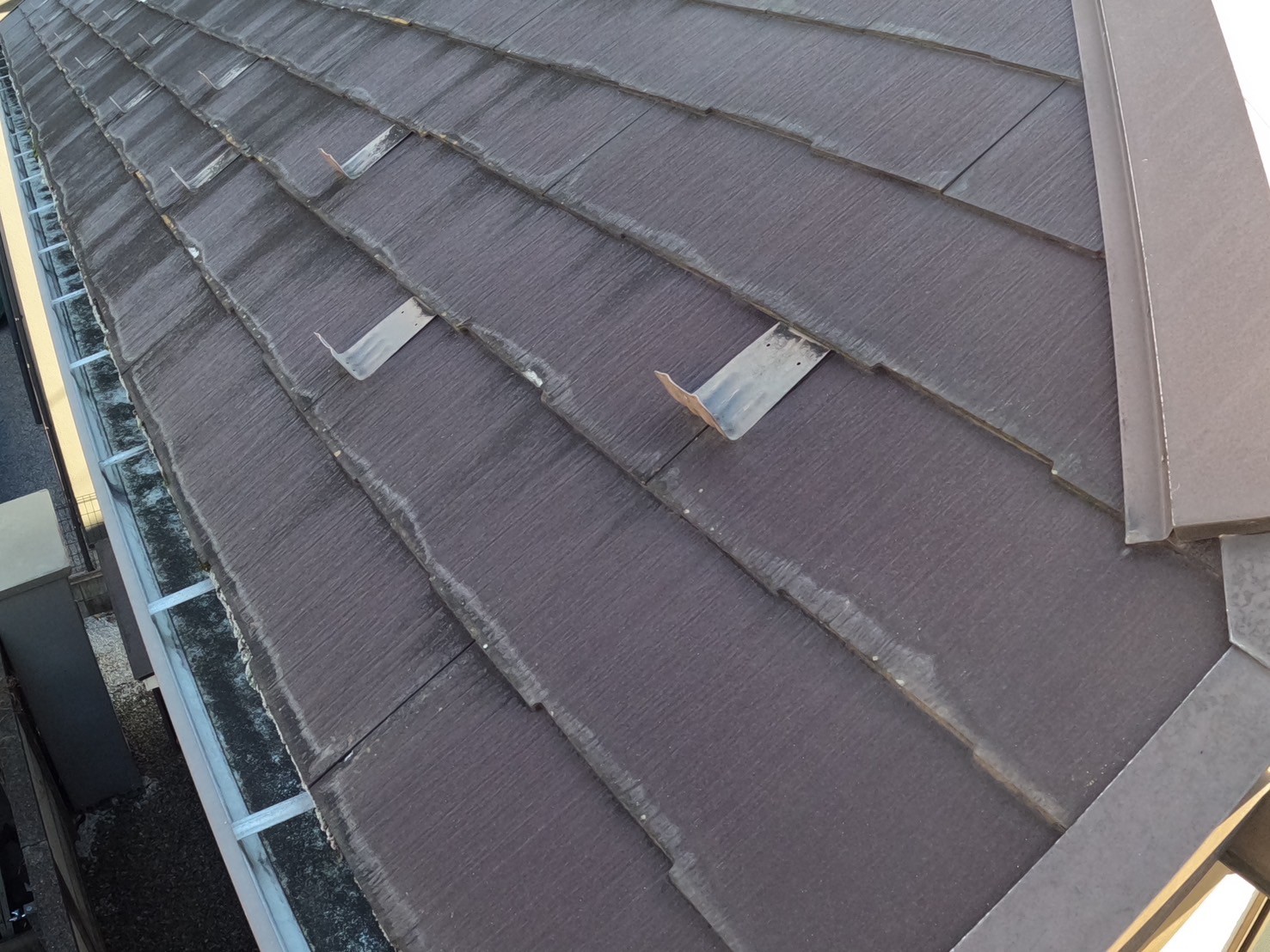 同時に、経年劣化による全体的に色あせやサビが目立っていたため屋根のカバー工法と、