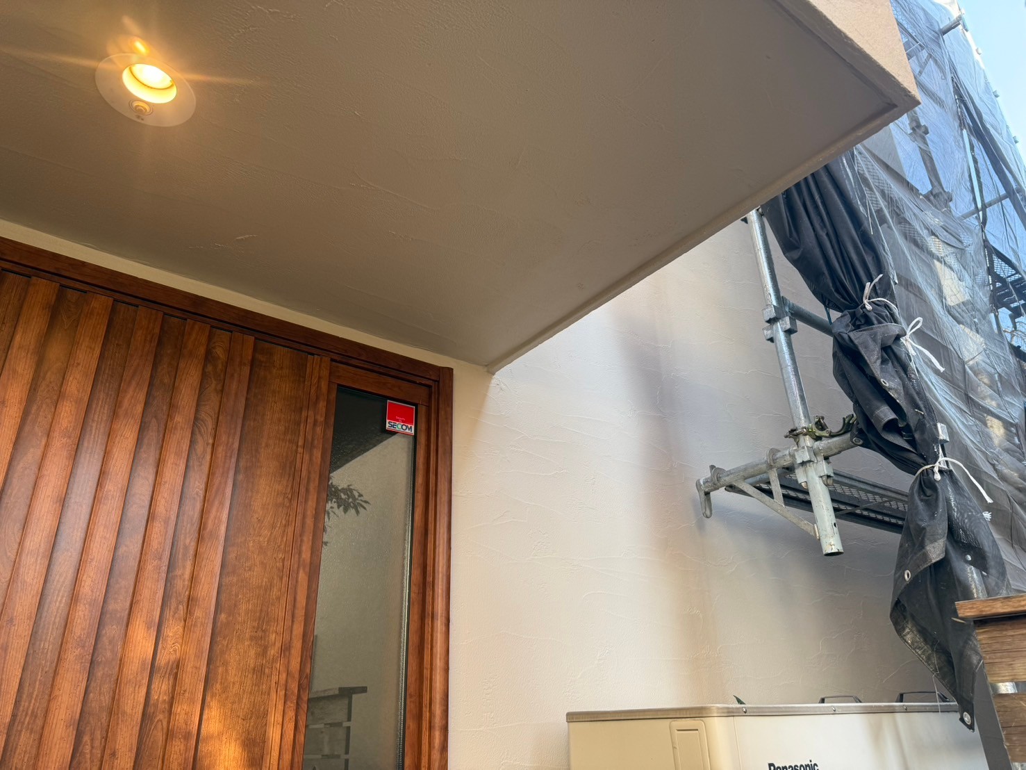 バルコニー防水工事と併せて、スイス漆喰壁・塗り替え外壁塗装工事を行いました✨